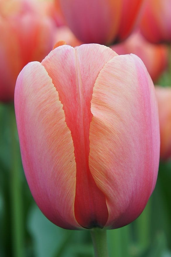 Tulips continue to enchant gardeners and enthusiasts alike with their versatility and charm. Their kaleidoscope of colors and shapes in the spring makes them ideal for a wide range of garden designs and arrangements. Whether planted in beds, borders or containers, tulips bring a touch of elegance and joy to any landscape. Most varieties are also good for cutting, and many are good for forcing. See our tulip comparison chart for further reference.