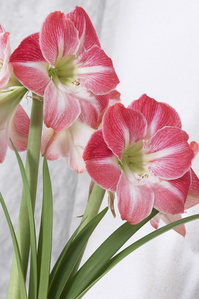 Our Amaryllis bulbs are of the largest size commercially available (36/38cm) and generally produce two or more flower stalks, each bearing 3–4 high-quality blooms.