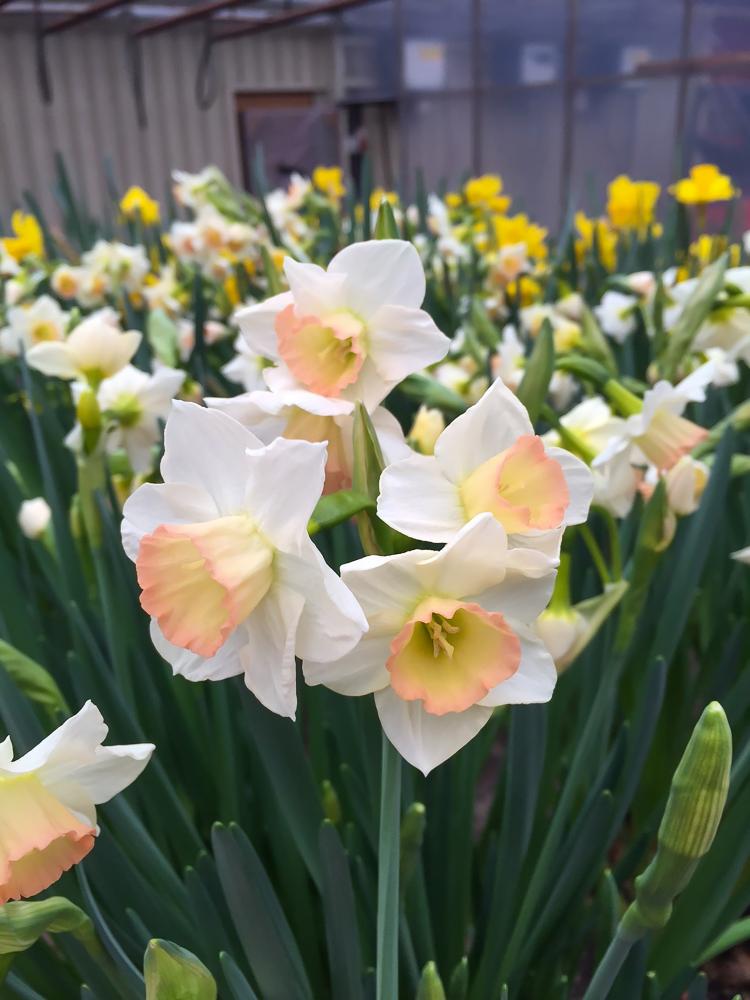 White petals surround a long ribbed pastel-peach cup with a pale yellow throat. This 2016 Dutch intro has taken the gardening world by storm with its romantic tricolor palette, multi-flowering habit and intoxicating fragrance. Bears 3–4 blooms per stem and is an excellent naturalizer.