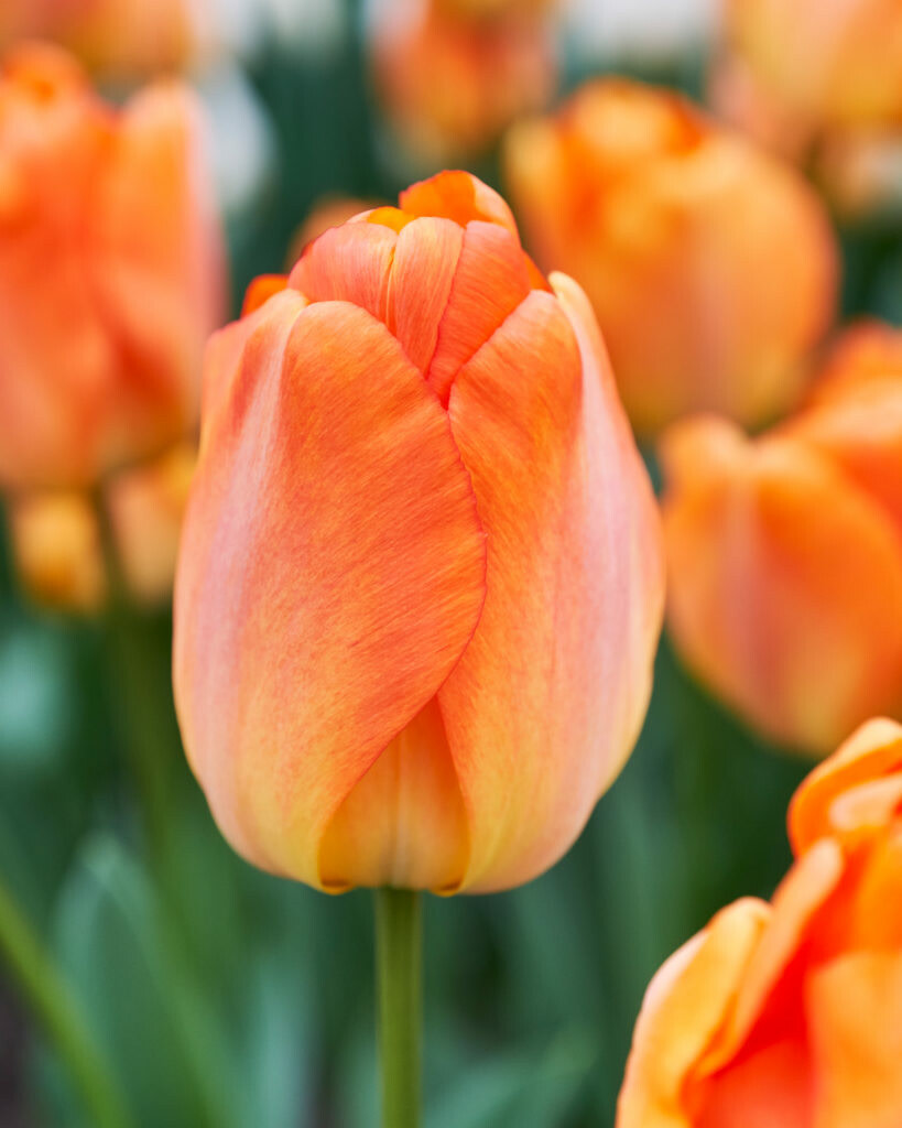 Tulips continue to enchant gardeners and enthusiasts alike with their versatility and charm. Their kaleidoscope of colors and shapes in the spring makes them ideal for a wide range of garden designs and arrangements. Whether planted in beds, borders or containers, tulips bring a touch of elegance and joy to any landscape. Most varieties are also good for cutting, and many are good for forcing. See our tulip comparison chart for further reference.
