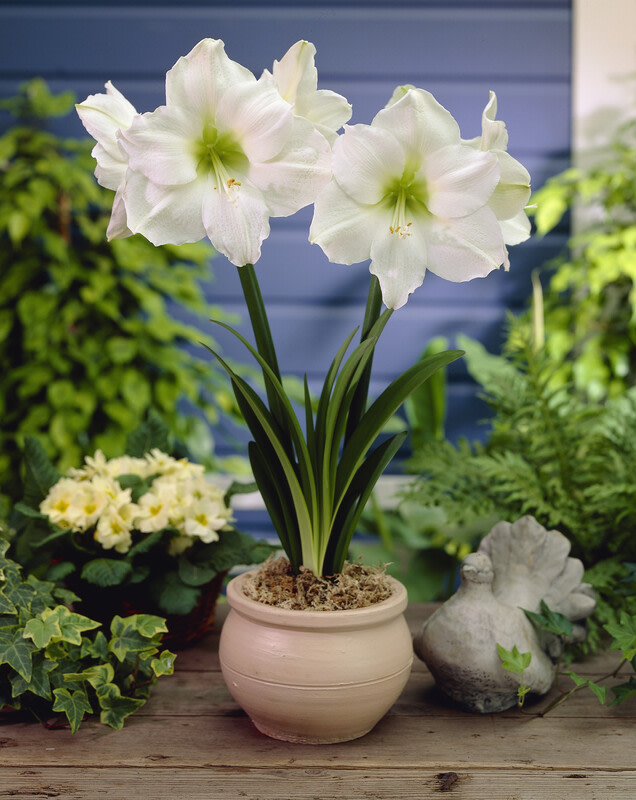 Our Amaryllis bulbs are of the largest size commercially available (36/38cm) and generally produce two or more flower stalks, each bearing 3–4 high-quality blooms.