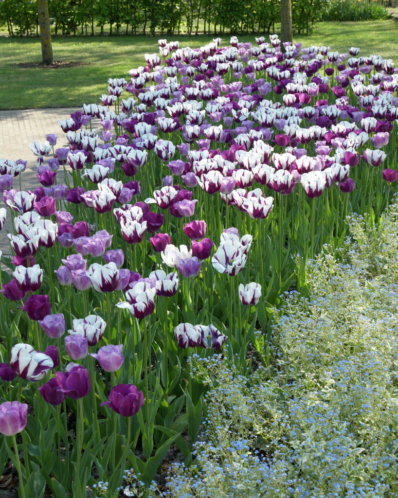 bulbs Tulipa Mid-spring blooms. Stop your garden guests in their tracks with a swath of big solid purple, lavender, and mixed purple-and-white blooms. The purple tones create a pleasing sprawl of color, while the splashes of white make everything pop! Z3–8. 12cm/up bulbs. 12-22" tall. NEW! ships in fall
