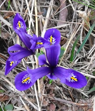 I. reticulata - Velvety royal purple-blue falls with a yellow crest, and lavender-blue standards.