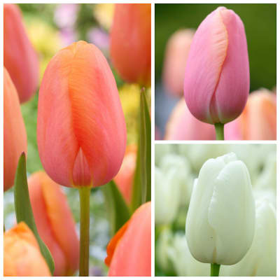 Early to mid-spring blooms. Fedco exclusive! A selection of three varieties with soft peachy cups.
