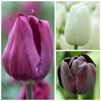 Late spring blooms. Fedco Exclusive! Springtime becomes a black-tie affair when the deepest purples are matched with pristine white blooms.
