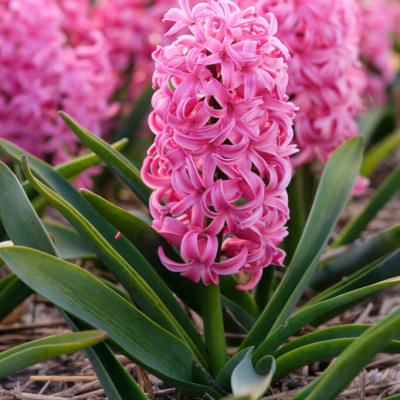 Hyacinthus orientalis Early to mid-spring blooms. Bold pink flowers for gardens and forcing indoors.