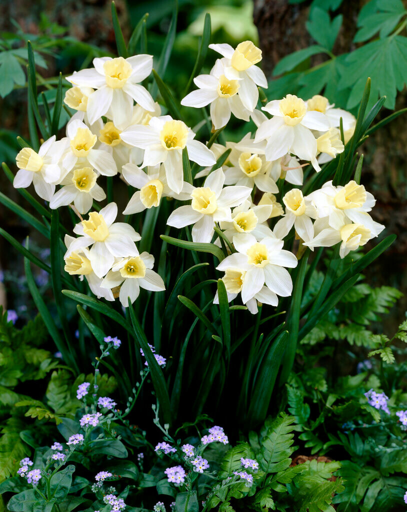 bare-root plants Narcissus jonquilla Mid to late spring blooms. Whimsical and modern, with dainty white outer petals and slightly ruffled lemon-meringue centers. Especially beautiful interplanted with blue- and purple-blooming spring bulbs. Enchanting fragrance; 2–3 blooms per stem. Z5–9. 12–14cm bulbs. 7-12" tall. NEW! ships in fall
