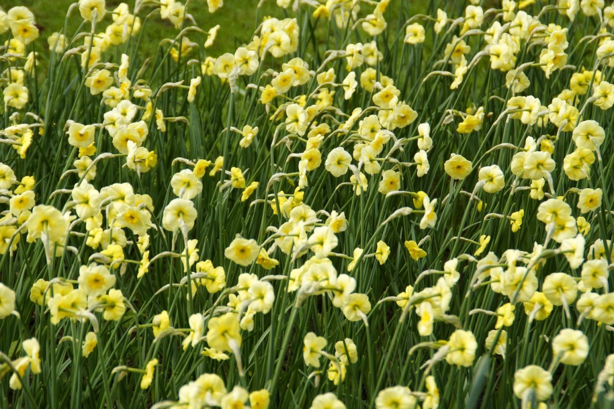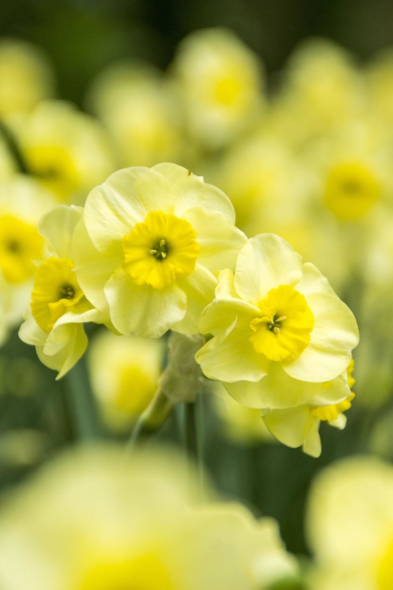 Award-winning fragrant miniature has 1–3 flowers per stem. Rounded overlapping petals open just slightly paler yellow than the cup, and slowly mature to a Jersey cream. Wide disc-shaped buttercup-yellow cup is lightly ribbed and lightly frilled. At 6–8" tall, this diminutive daffodil is just right for pots or the front of the border.