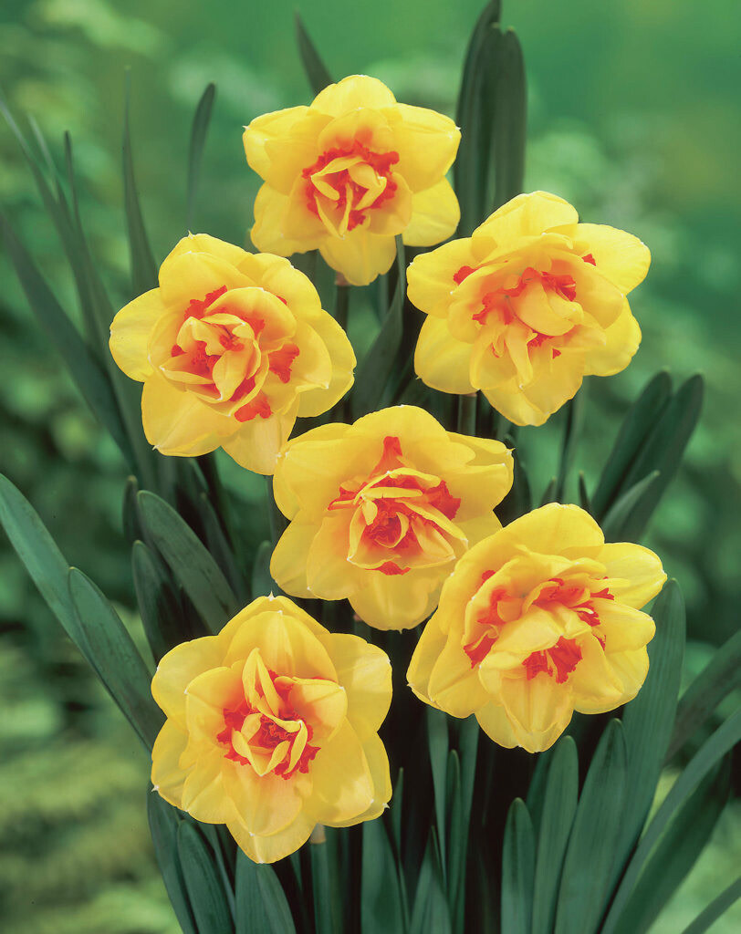 Rich golden-yellow doubled flowers layered with red-orange segments. Large long-lasting blooms with stand-out color and fragrance come as close to tropical exuberance as you’ll find in a New England spring. Bred in Ireland in 1956, Tahiti is a classic worldwide.