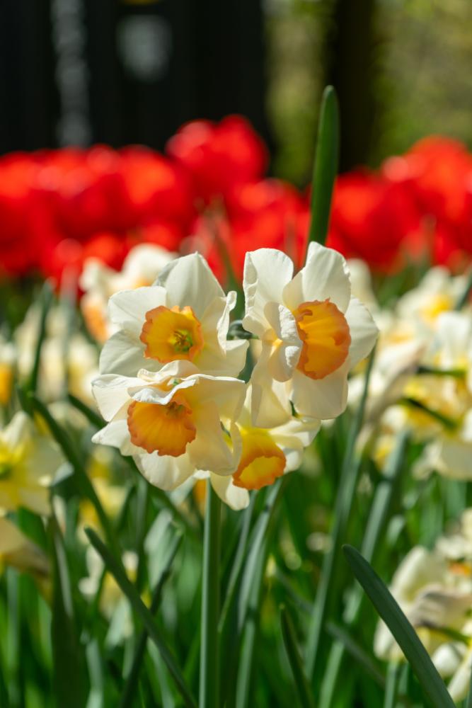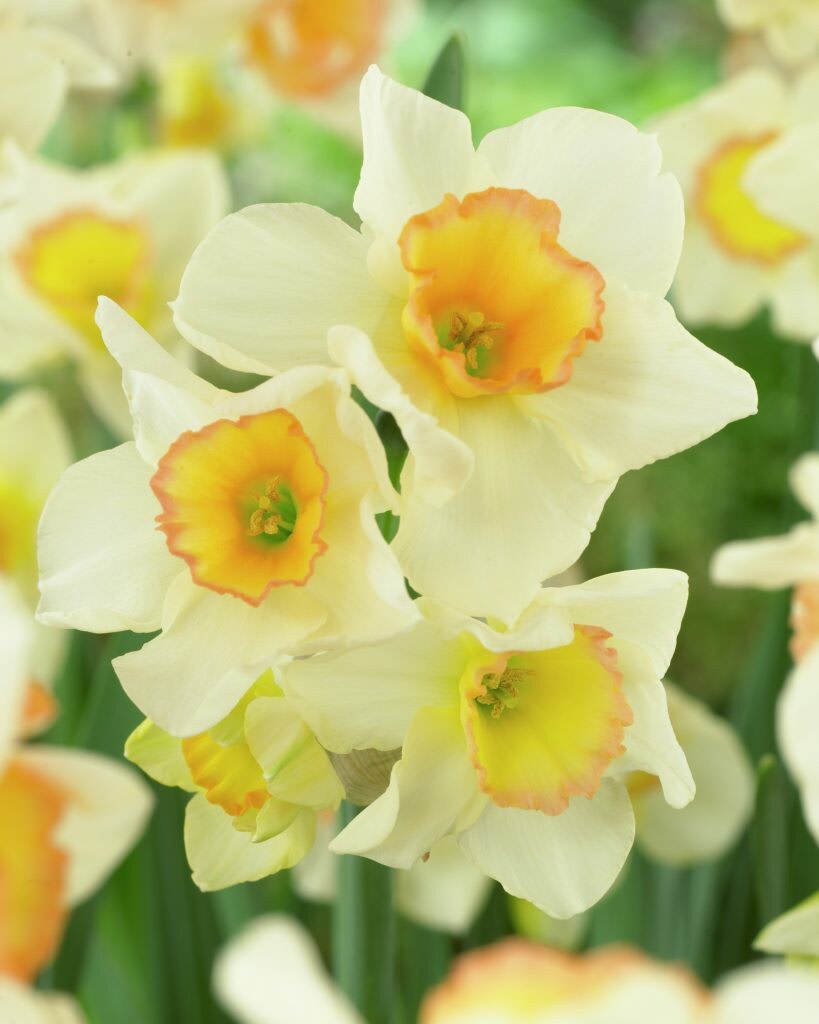 Creamy white outer petals surround a yellow ruffled cup with peach-pink edges. Sprays of fragrant flowers are borne on tall stems. A great choice for arranging. As with all jonquils, it performs well in warmer climates, but its best pink color will develop in cooler springs.
