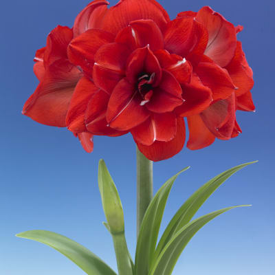 Our Amaryllis bulbs are of the largest size commercially available (36/38cm) and generally produce two or more flower stalks, each bearing 3–4 high-quality blooms.
