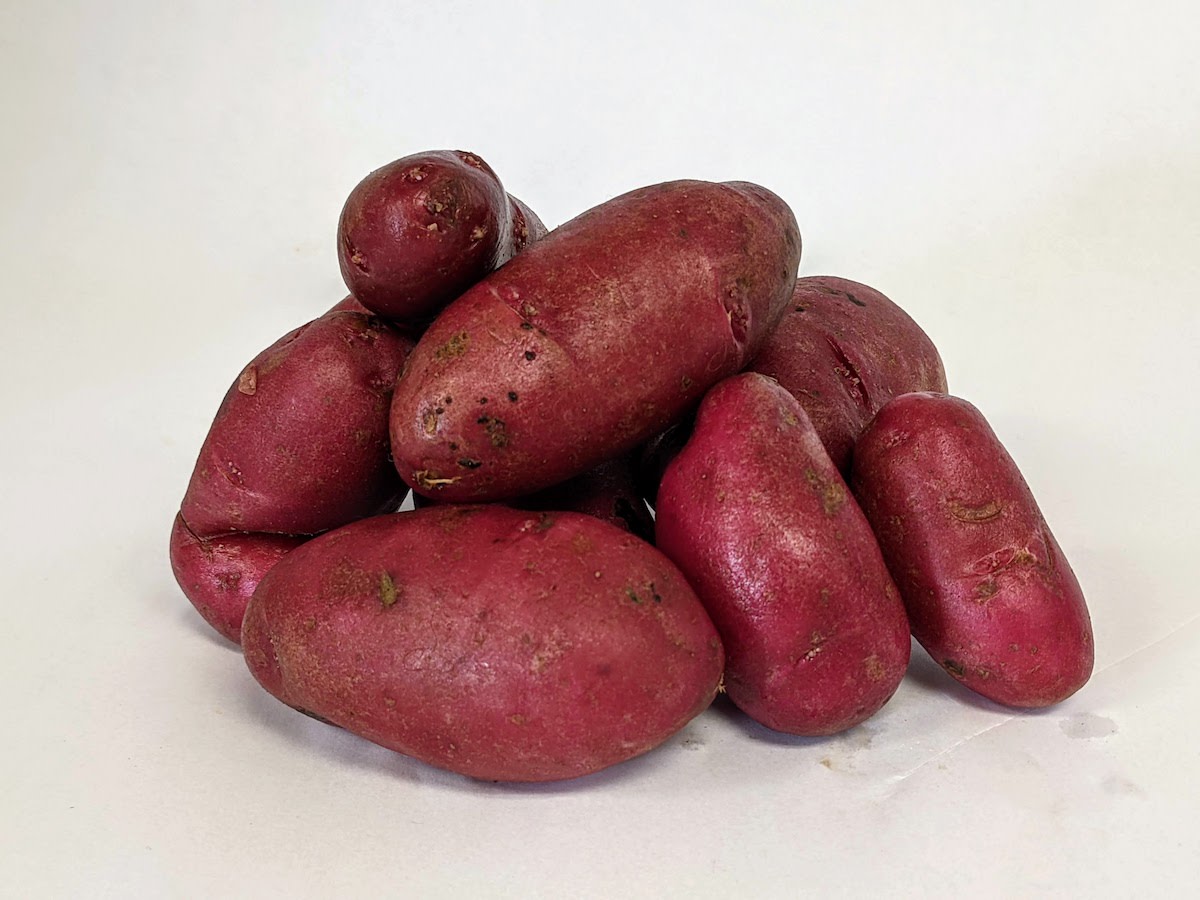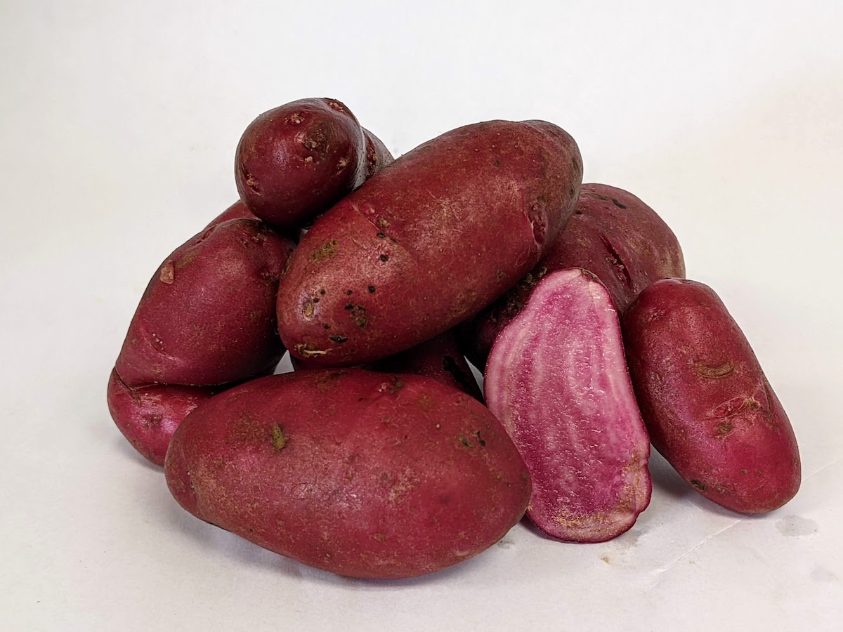 Classically plump fingerling shape with smooth red skin and creamy red flesh with excellent color retention, AmaRosa made the grade for high yields, and they’re tasty as heck. Leave the skins on when cooking, as they have a high vitamin C and mineral content.