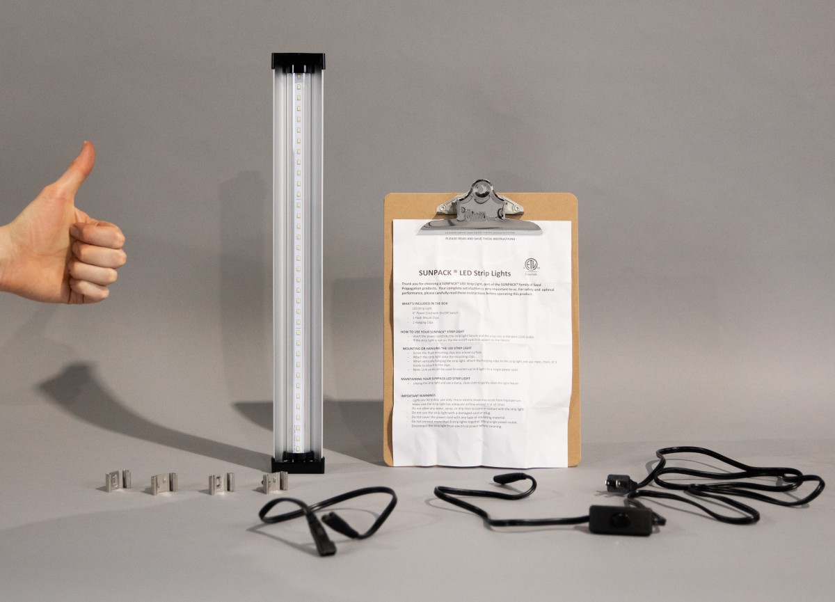 SUNPACK’s high-output full-spectrum lighting ensures your seedlings receive optimal conditions. Energy-efficient LEDs save loads of electricity and have an estimated lifespan of 50,000 hours. These are complete, ready-to-use lights (integrated fixture and “bulb”) with a built-in reflector to direct light at your plants. Lights are easily daisy-chainable; you can link up to 8 together running off just one power cord. Each light comes with a 6' power cord (with on/off rocker switch), a 14" link cord, two eye clips, and two S-clips. Lights can also be connected end-to-end using the Grow Light Connector. Support with Grow Light Stands, or with High Domes with Light Tracks. Covered by a two-year warranty. Additional features: