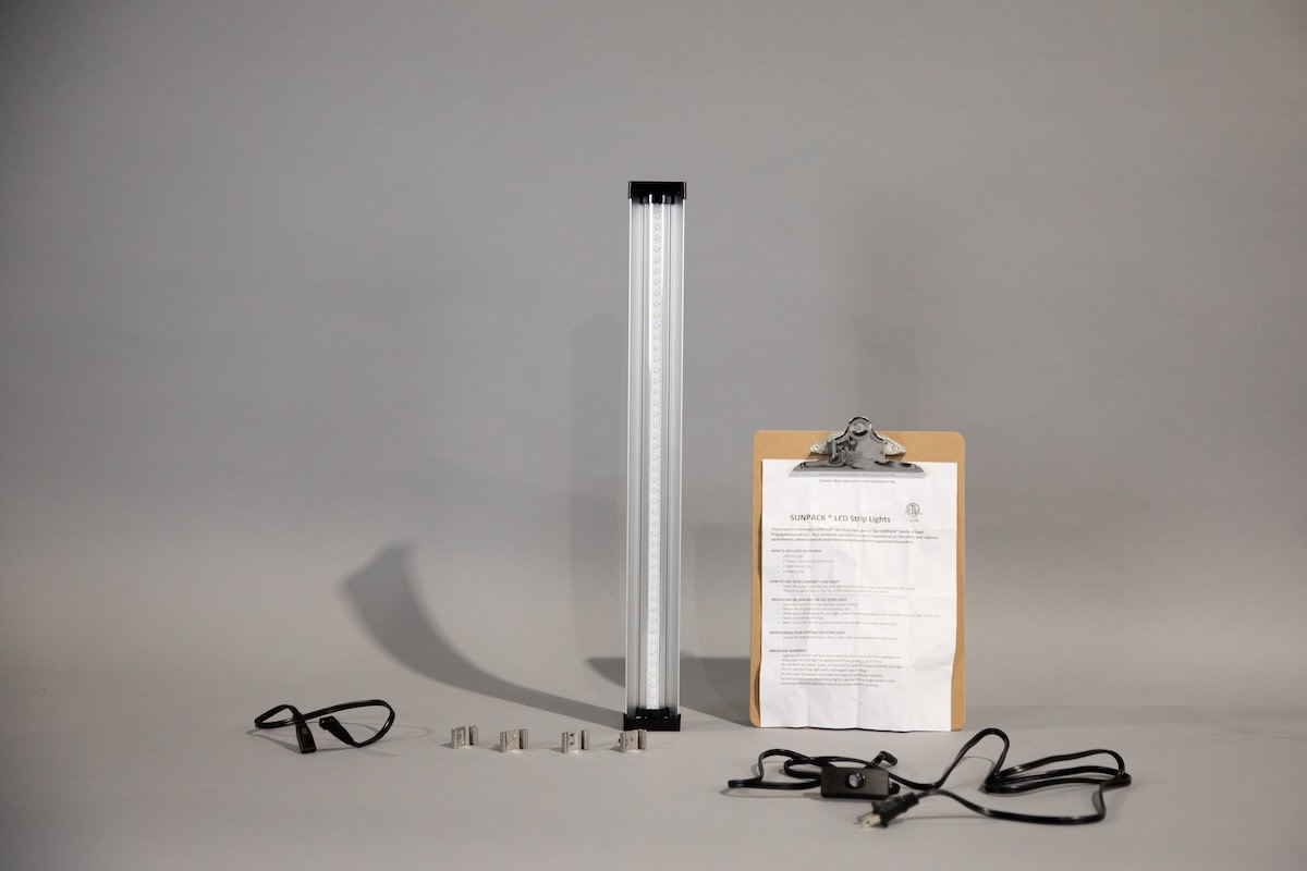 SUNPACK’s high-output full-spectrum lighting ensures your seedlings receive optimal conditions. Energy-efficient LEDs save loads of electricity and have an estimated lifespan of 50,000 hours. These are complete, ready-to-use lights (integrated fixture and “bulb”) with a built-in reflector to direct light at your plants. Lights are easily daisy-chainable; you can link up to 8 together running off just one power cord. Each light comes with a 6' power cord (with on/off rocker switch), a 14" link cord, two eye clips, and two S-clips. Lights can also be connected end-to-end using the Grow Light Connector. Support with Grow Light Stands, or with High Domes with Light Tracks. Covered by a two-year warranty. Additional features: