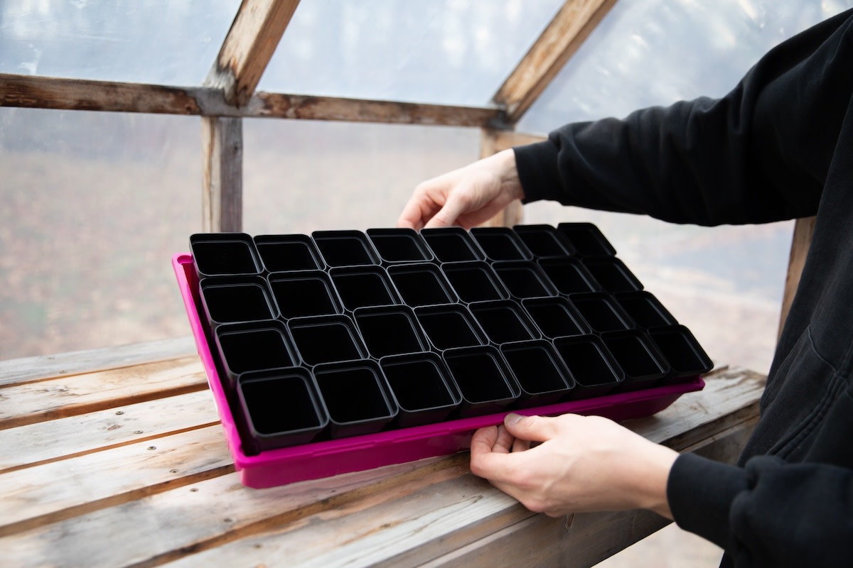 Strong injection-molded dishwasher-safe pots have efficient drainage holes, are easy to fill with potting mix, and are easy to extract seedlings from.