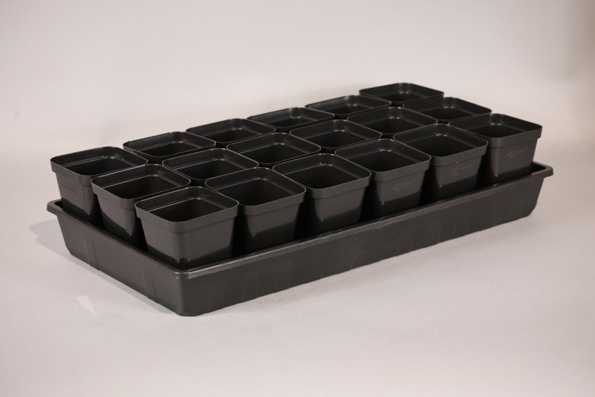 Strong injection-molded dishwasher-safe pots have efficient drainage holes, are easy to fill with potting mix, and are easy to extract seedlings from.