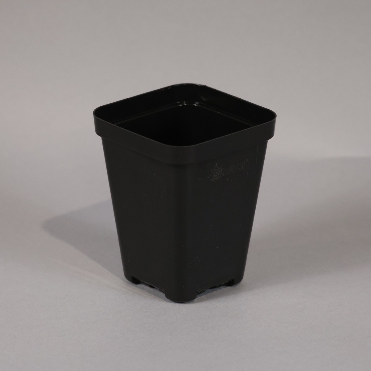 18 pots fit neatly into a standard 1020 flat. 3⅓" square at upper rim, tapering at bottom; 4⅓" tall.