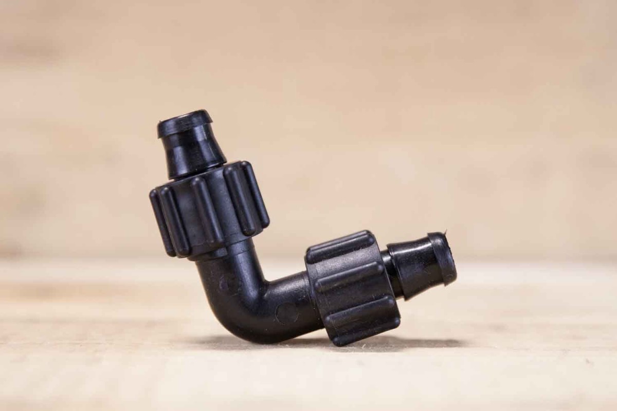 Drip tape will not go around a 90° corner, so use this elbow for sharp turns in your drip tape line.