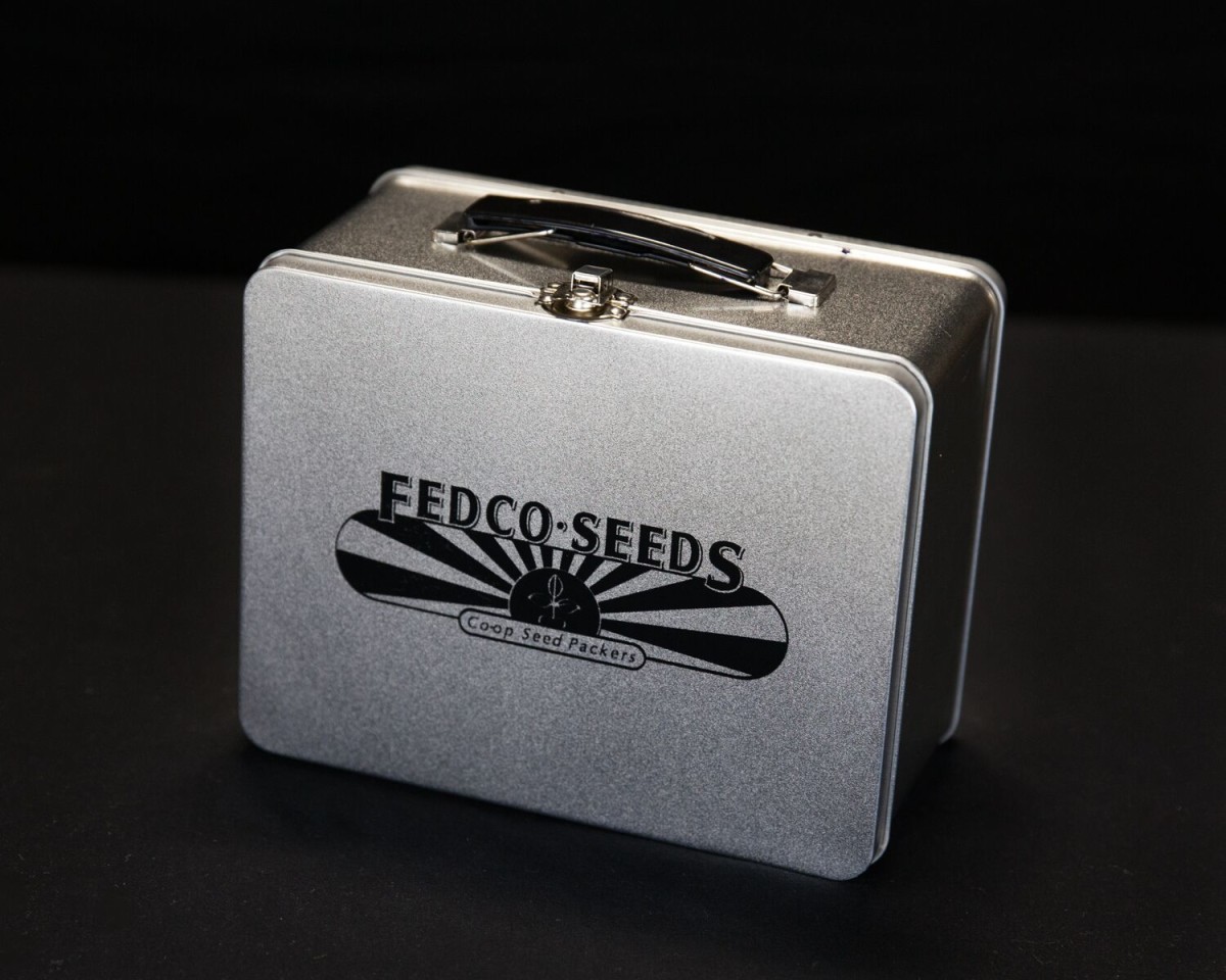 This nifty metal lunchbox serves myriad uses for kids, gardeners and farmers alike. Perfect for toting Scoobie snacks out to the field, or for holding your spare shear bolts on the tractor. We use ours to keep seed packets dry while gardening on drizzly days, as well as long-term seed storage/filing containers! Looks as old-school as our catalog with the sharp Fedco Seeds logo on a silver background. 4x6x7¾".