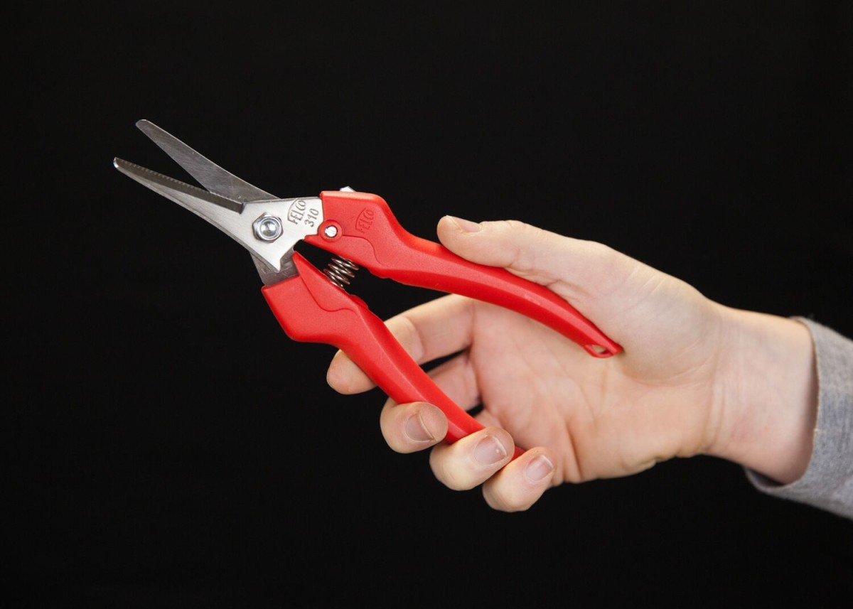 Fruit and vegetable harvesting shear, lightweight with a narrow needle-nose head for harvesting grapes, cutflowers, broccoli sideshoots, and other produce. Great for pruning nightshades, too! Manufactured in Italy with the same fine steel as the more expensive Felco tools.