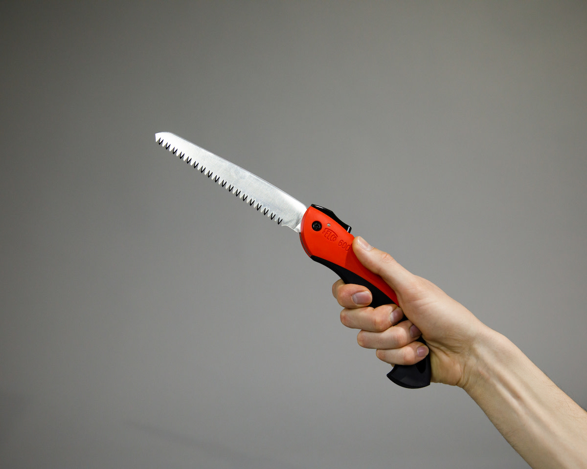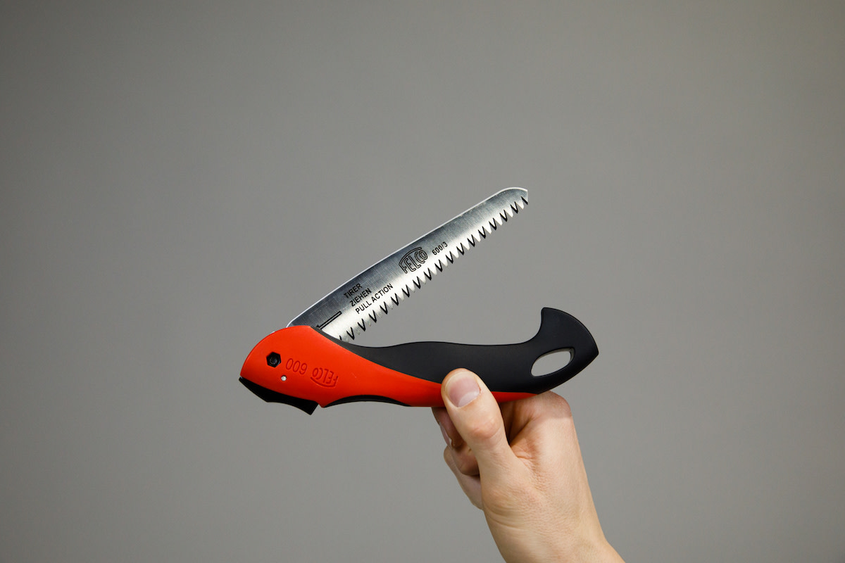 Japanese-style pull-action pruning saw with a locking blade that folds into the handle. The patented design of the blade, thicker at the bottom and thinner at the top, prevents clogging and binding, since only the teeth come in contact with the wood. Works well in tight places and cuts branches up to 4" in diameter. Overall saw length, 14"; blade length, 6"; weight, 4.9 oz. Replacement blades available.