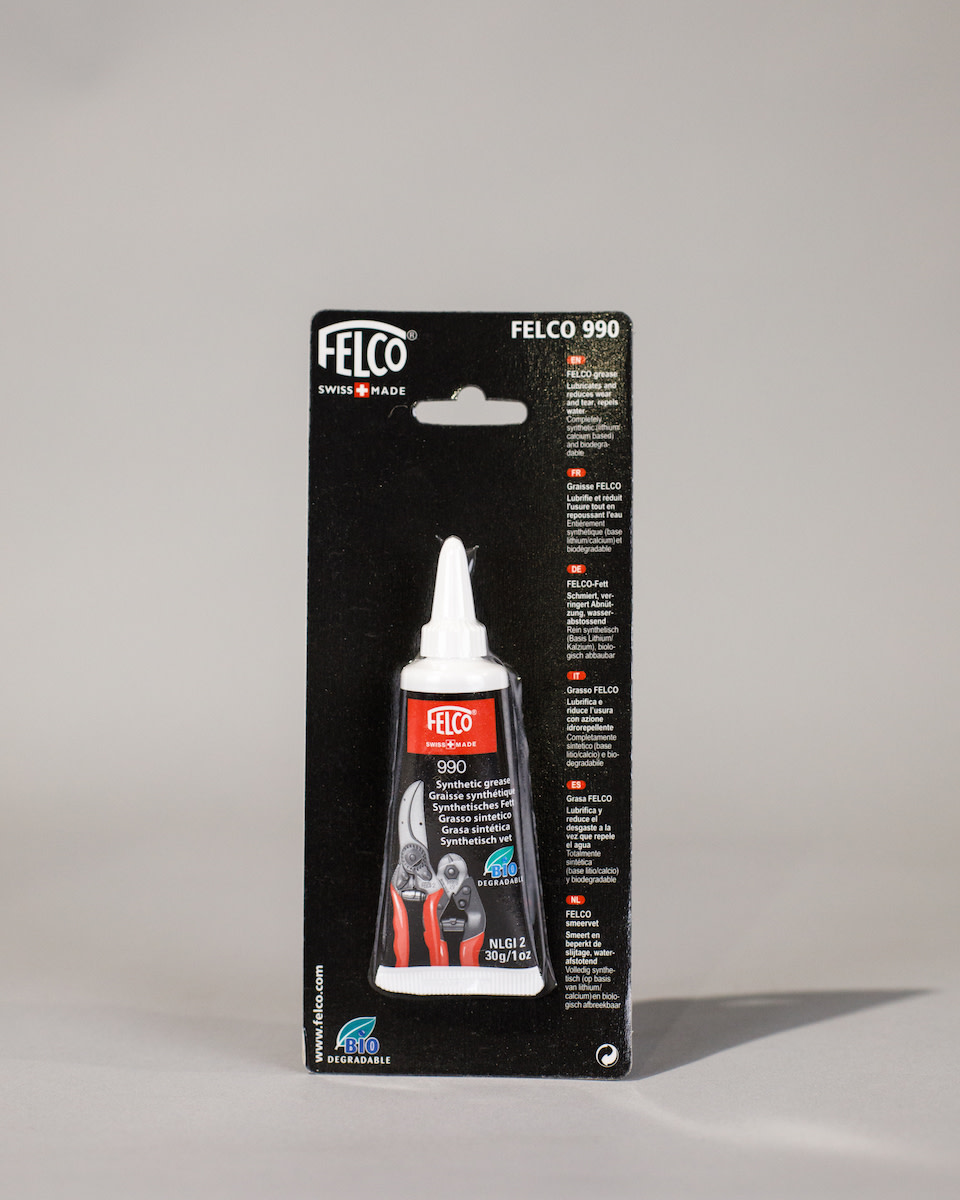 High-quality grease prevents corrosion and keeps parts moving freely. Clean your pruners regularly with Felco Lubricant then coat the moving parts with Felco Pruner Grease to keep your tools in prime working order.