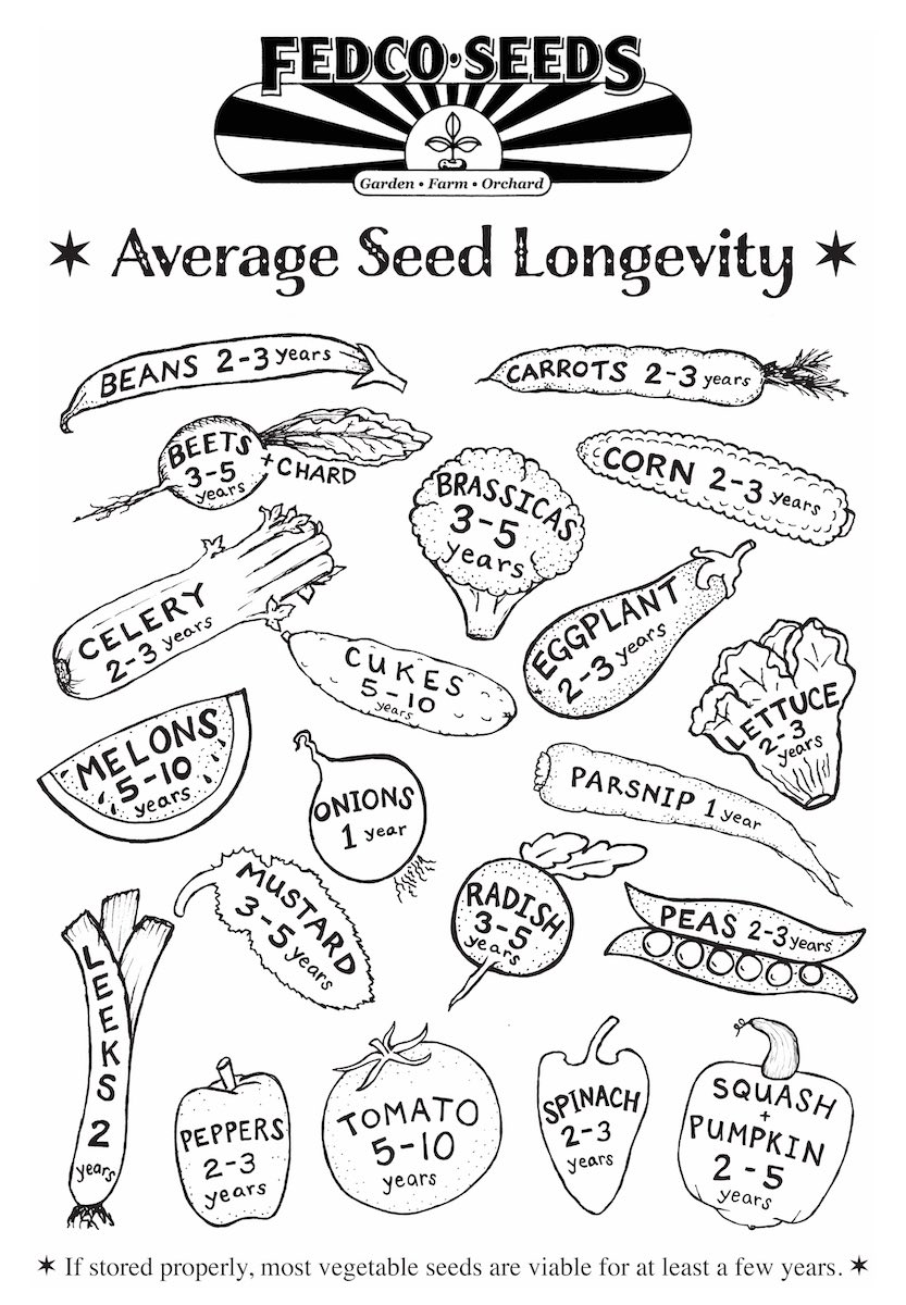 • Waterproof card with quick reference to longevity of vegetable seeds.