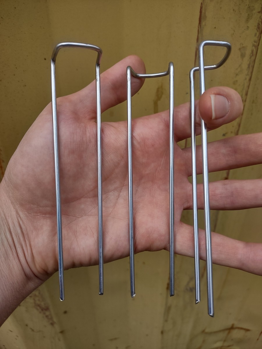 The garden seems full of rocks until you need one to anchor your fabric! Galvanized steel wire anchor pins neatly hold down plastic mulch, row covers, woven ground cover/landscape fabric, irrigation line, plastic fencing, or bird netting.