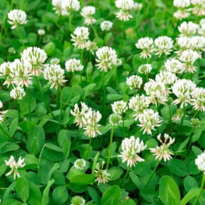 Trifolium repens Perennial legume. The lowest-growing clover. This shade- and traffic-tolerant perennial makes nice garden paths and living mulch. Our most popular clover.