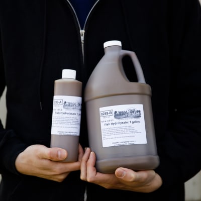 NPK: 2-5-0.2. Fish heads, bones, skin and guts finely ground and then enzymatically digested. Can be used as foliar feed. Made from wild fish scraps from the fishing industry along the Great Lakes.