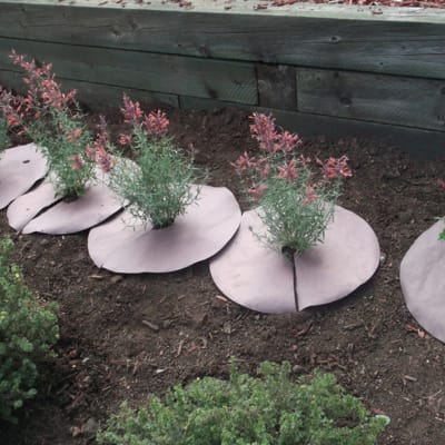 Looking for Earth-friendly weed-barrier mats? Circle up! Each round heavy weight sheet comes with a neat slit and center X, so you can easily slip it around the trunk or stalk of the plant.