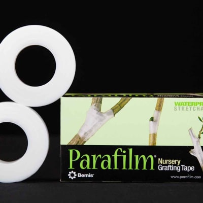 Very stretchy ½" tape holds graft union firmly together. Unlike PVC, Parafilm, a low-molecular-weight polyethylene product, is relatively benign in the environment.