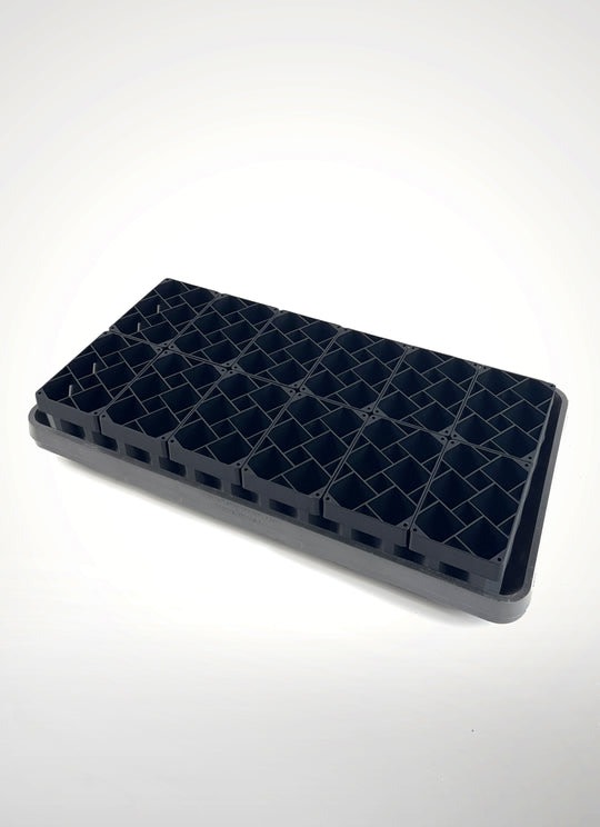 New Mini Wini trays for smaller plantings: Each Mini Wini Medium-cell Tray Each tray has 6 cells, with cell size of 1.3" wide x 2.3" deep. You can fit 12 of these into one 1020 tray. Durable recycled polypropylene is food grade, BPA-free, UV-resistant, and recyclable wherever #5 plastics are accepted. Made in the USA.