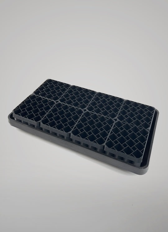 New Mini Wini trays for smaller plantings: Each Mini Wini Small-cell Tray Each tray has 16 cells, with cell size of 1" wide x 1.9" deep. You can fit 8 of these into one 1020 tray. Durable recycled polypropylene is food grade, BPA-free, UV-resistant, and recyclable wherever #5 plastics are accepted. Made in the USA.