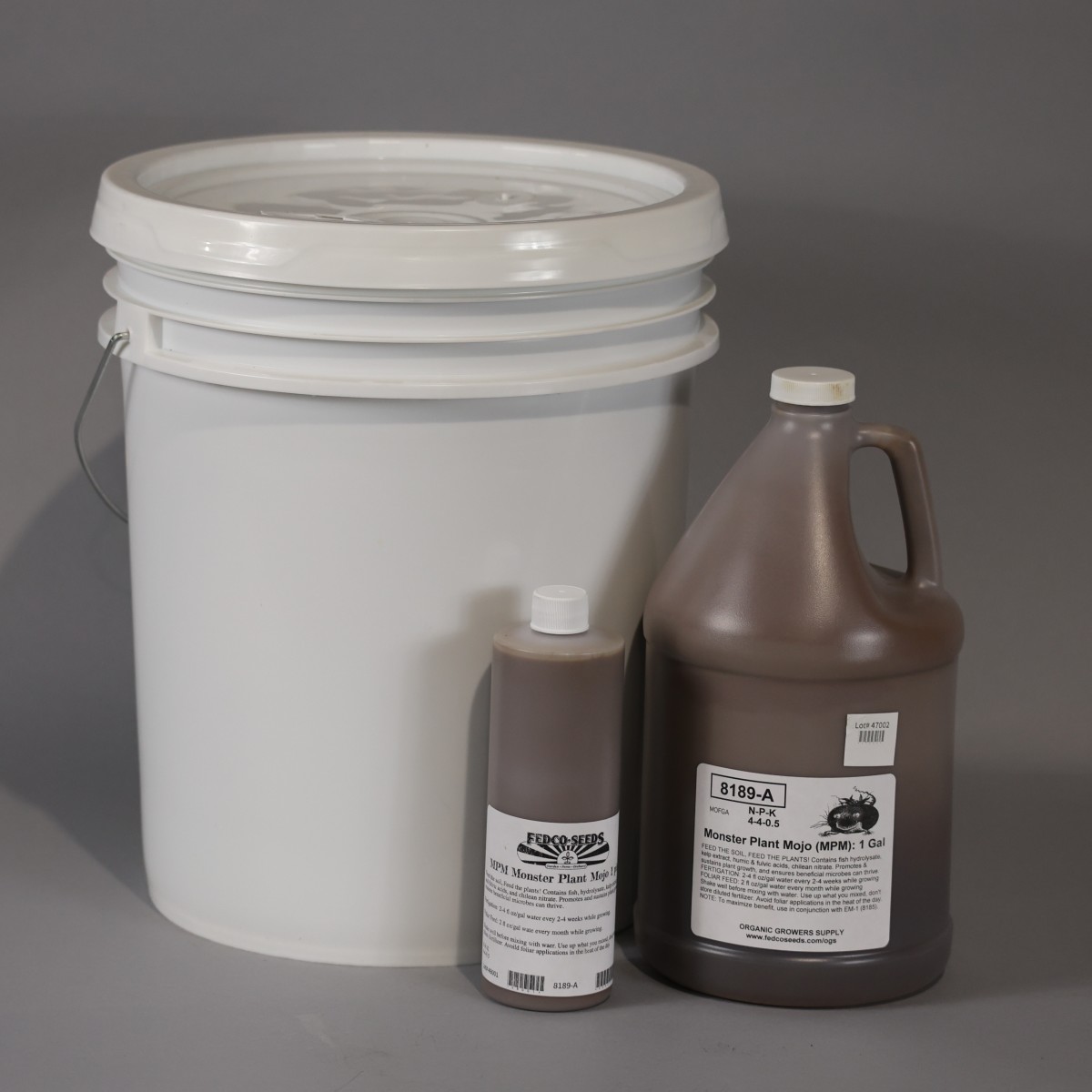 NPK: 4-4-0.5. High in nitrogen and phosphorus, MPM is a one-stop-liquid-shop for all your foliar and fertigation needs throughout the growing season. Contains fish hydrolysate (stabilized with phosphoric acid), kelp extract, humic and fulvic acids, and a dash of chilean nitrate to boost the nitrogen levels for rapid vegetative growth. Fulvic acid, an essential part of soil organic structure, has been found to promote greater root development, yielding stronger, more disease-resistant plants. Contains high levels of available calcium; when used in orchards, MPM has been shown to decrease incidence of bitter pit in Honeycrisp apples by 40-60%.