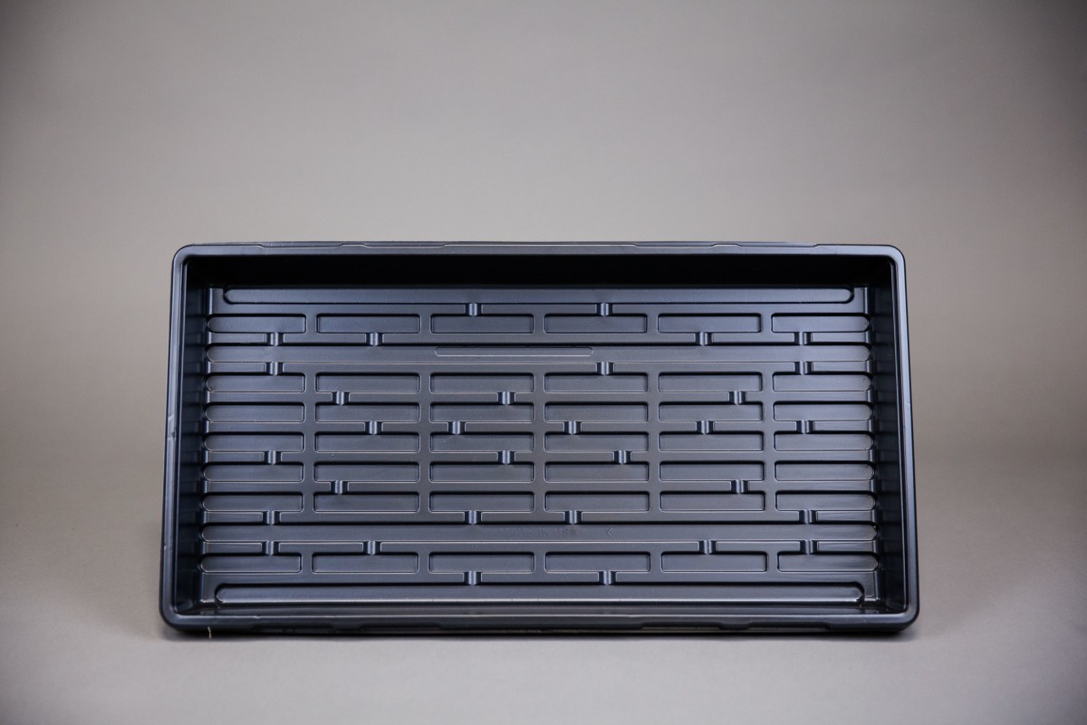 10½ x 21 x 2¼" grey plastic trays, often called 1020 Trays. Good for windowsills because they have no drain holes. Use with a dome to hold in heat and moisture.