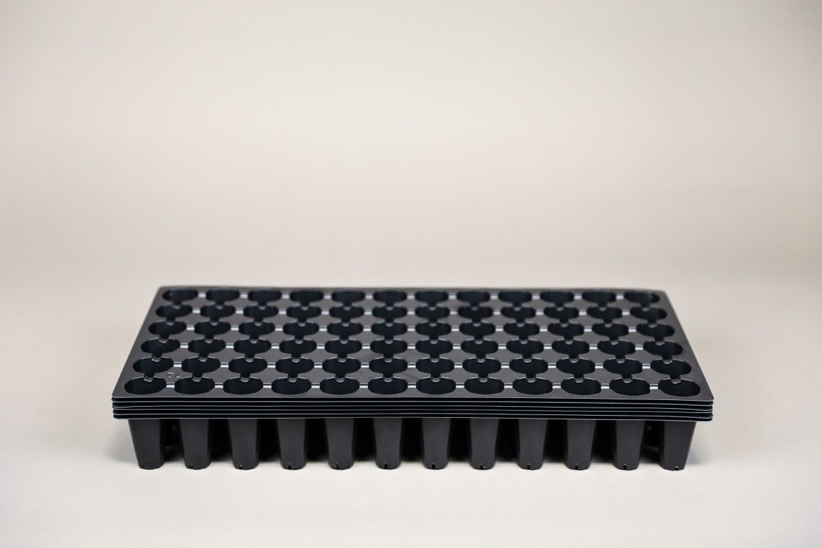 Also known as Pro Trays. Fit into standard 1020 Trays for easy handling in the greenhouse. Made of lightweight black plastic with bottom drain holes. 72 round cells in a sheet, 1.50" wide, 2.31" deep.
