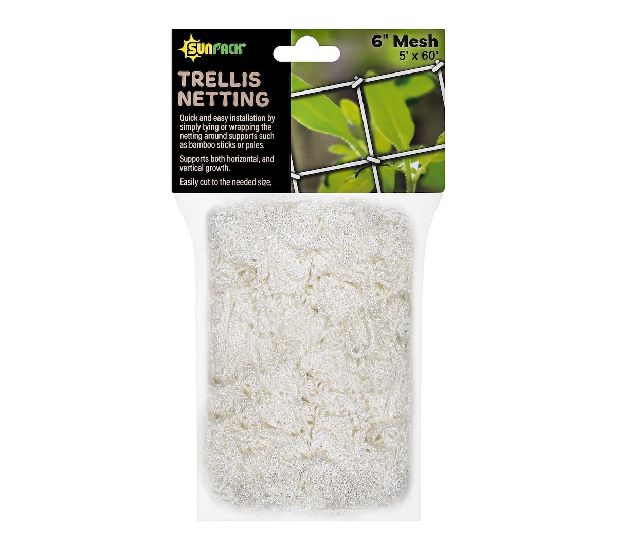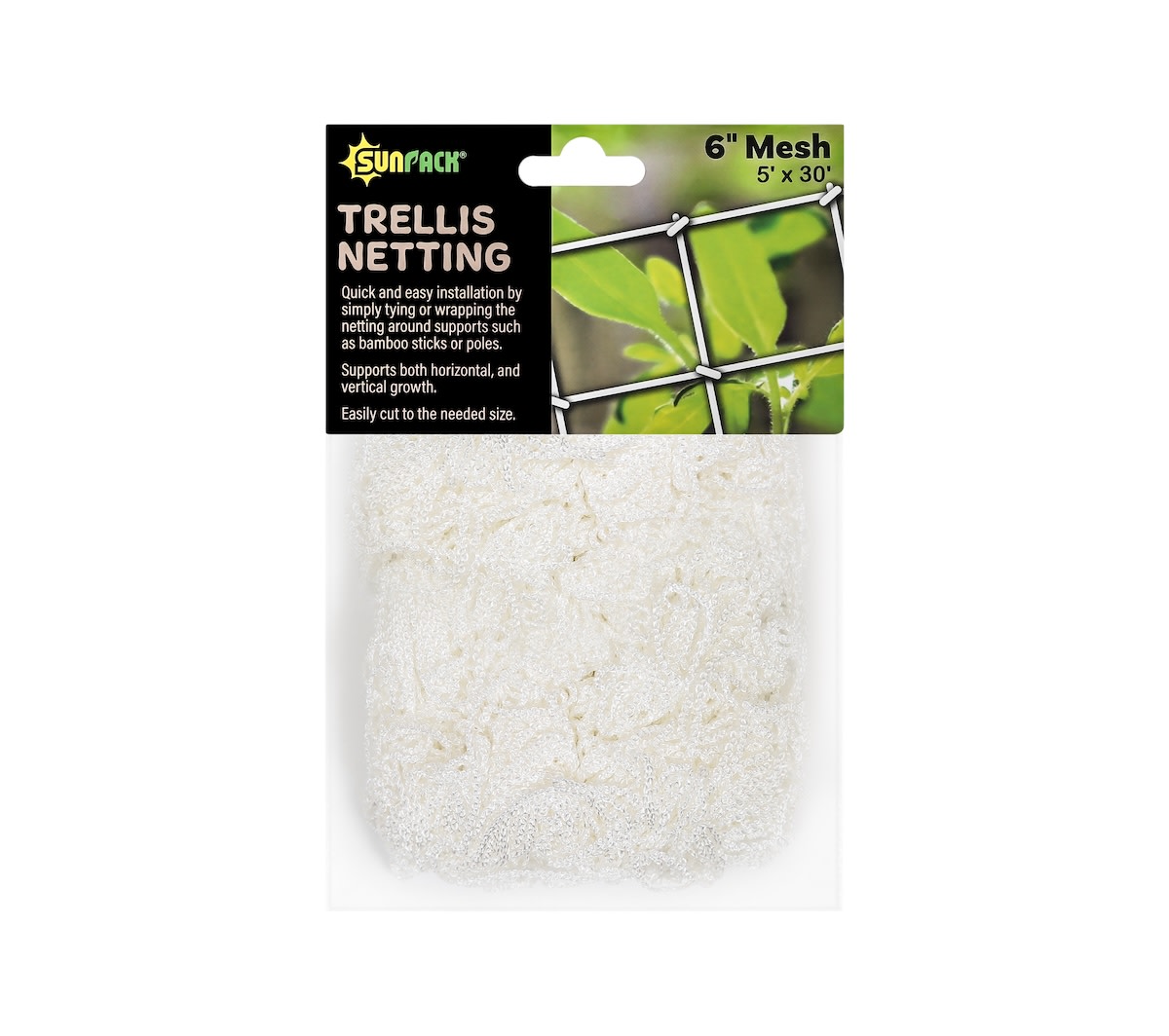6" reach-through polyester mesh for vertical support of crops like tomatoes, climbing beans, peas, cucumbers and luffas. If using vertically, weave a strand of fence wire through the top for extra support. Or install horizontally for lateral crop support. Will last for years if you can avoid “the tangles”! Easy to cut if you wish to alter the size. Consider using our UV-resistant zip ties to secure the netting to posts or other supports.