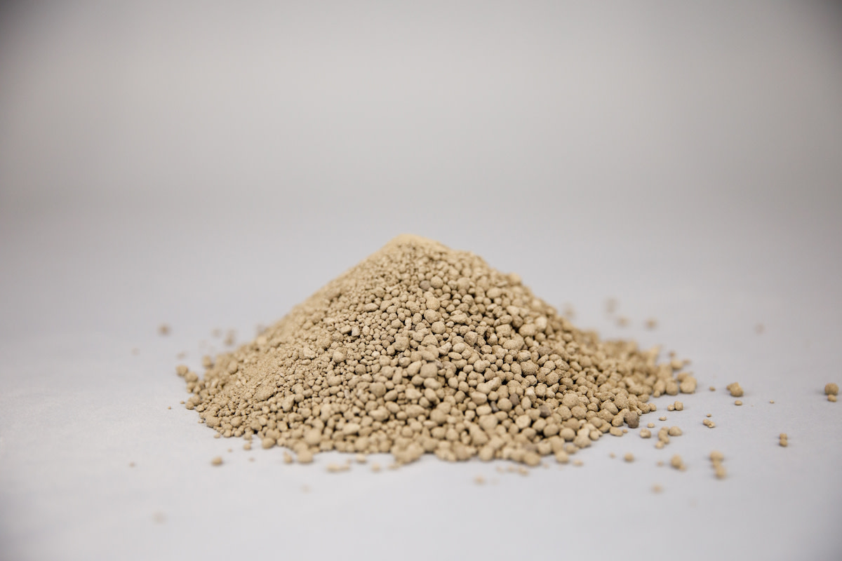 Prilled with 2% sodium salt lignin, an NOP-allowed synthetic, as a binding agent.