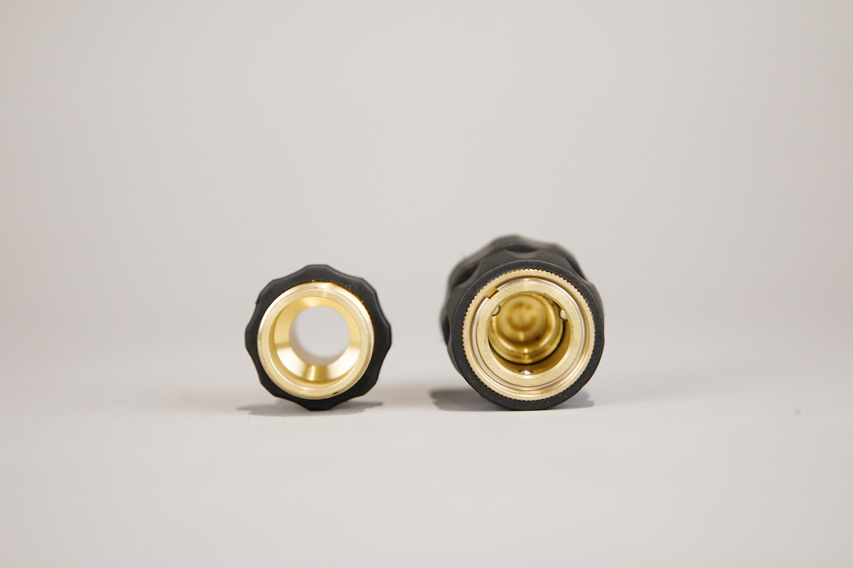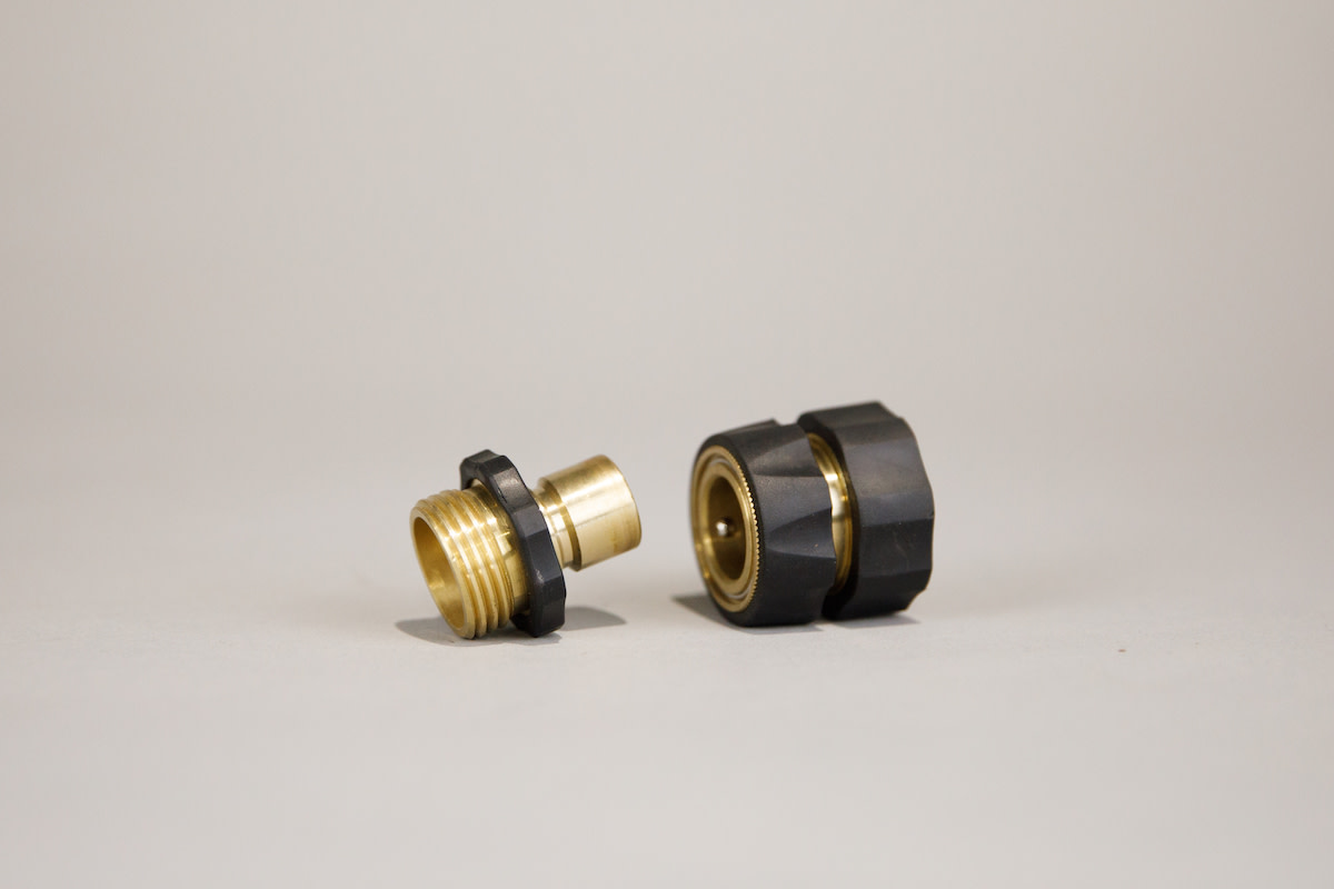 For anyone who changes or moves hoses on a regular basis, this nifty attachment is a lifesaver! Rather than having to screw and unscrew your hose to the water source, these fittings simply snap together for a watertight seal. To release, just depress the collar—the locking mechanism works much like a quick-release bit holder on an impact driver. You don’t even have to turn the water off—water flows only while fittings are connected! Beware: significantly cheaper versions of these fittings are made of aluminum and they require the water to be turned off before disconnecting. This is a 2-piece set. We also sell additional male-only fittings. Note: This product requires a Prop 65 Warning.