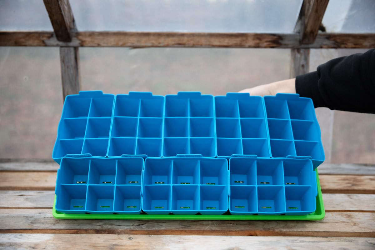It’s easy to keep track of what you’re growing: write on the sides with a permanent marker, and remove with rubbing alcohol at the end of the season. Sterilize with steam or hot water for endless reuse. Each cell has a drainage slit on the bottom. Soil releases easily from the sides at planting time.