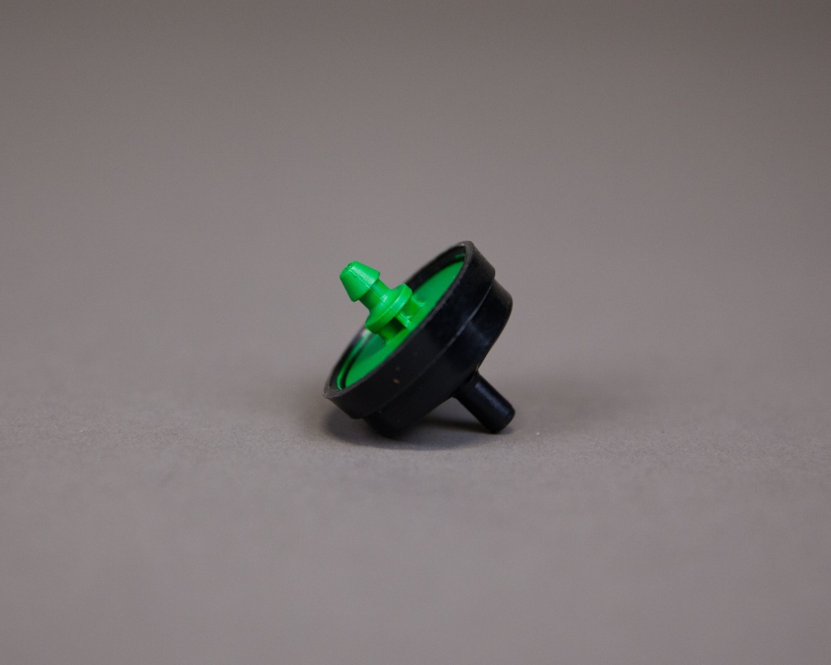2-gph pressure-compensating spot emitters provide uniform flow the length of the line.