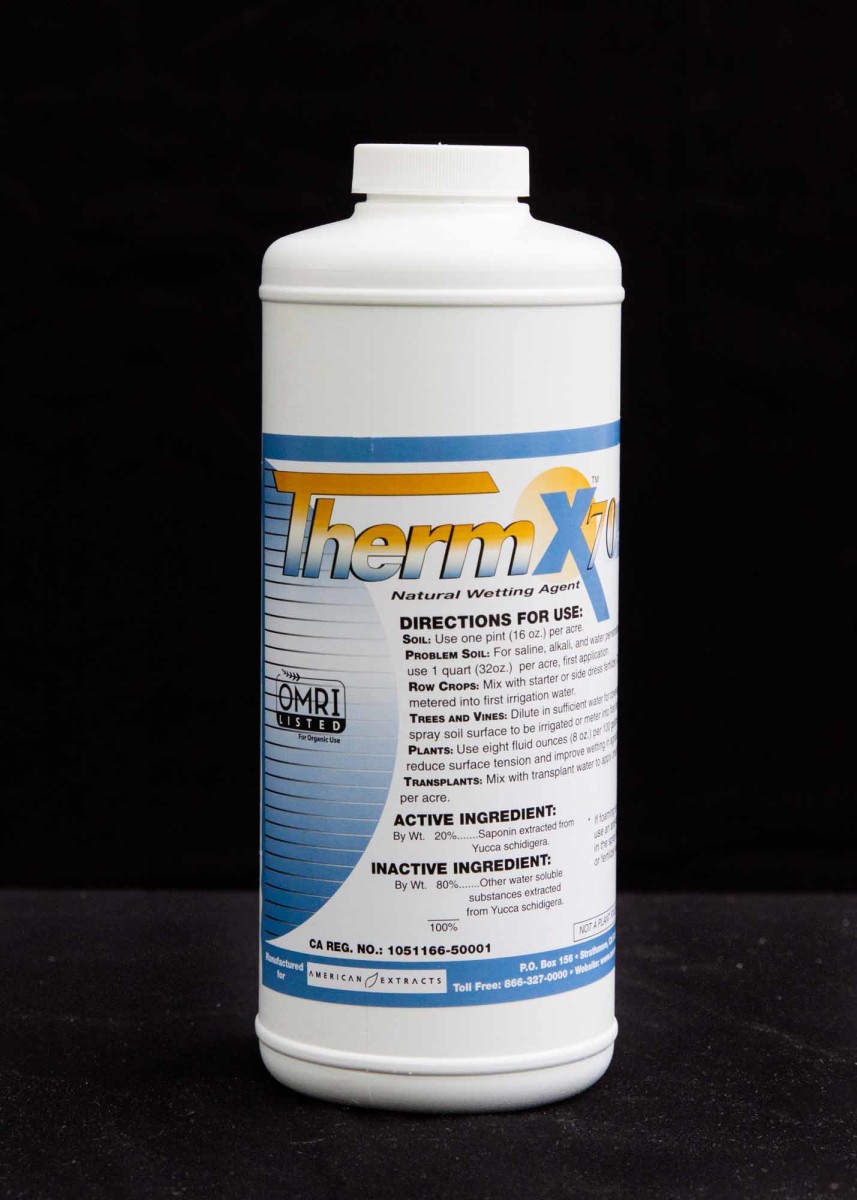 A wetting agent and spreader-sticker, made from a liquid concentrate of 70% yucca solids. Increases the longevity and effectiveness of pesticide applications and forces hydrophobic potting media (like dry peat moss) to more readily absorb water.