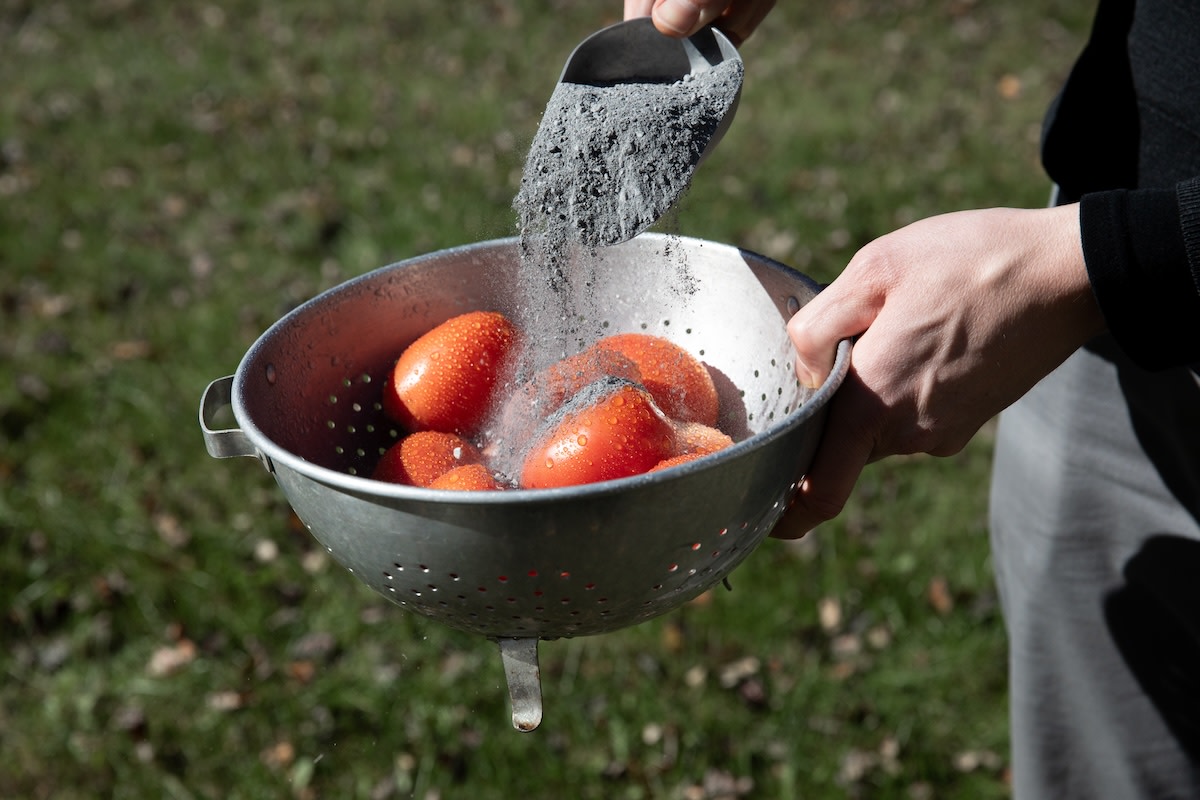 (3-4-6.1, plus 5.8% Ca, 6.2% S, 3% Mg, 8.7% SiO2, 1.3% humic acids) By popular demand from our customers! Formulated to meet the needs of field-grown (outdoor) fruiting Solanaceous crops: tomatoes, peppers, eggplants and tomatillos. Making a fertility plan for these crops stumps many growers. We’ve eliminated the guesswork with this balanced blend that provides just the right macronutrients and micronutrients that nightshades need. Crafted with love, we dye each batch with red food coloring, so it looks like you’re spreading marinara…just kidding! Contains feather meal, bone char, K-Mag, wollastonite, kelp meal, and Hum-Amend Max. At planting time, apply 6#/100 sq ft, or 2600#/acre; or 3 Tbsp per transplant hole; 4 Tbsp/gal soil for containers. If you’re growing tomatoes in a hoophouse where they will grow much faster and longer, we recommend supplementing with additional nitrogen (27# feather meal per 1000 sq ft) and potassium (14# sulfate of potash per 1000 sq ft). To sidedress midseason, spread 2 cups per 5 row feet; or 3 T around each plant; 1½ Tbsp per 12" container. MOFGA