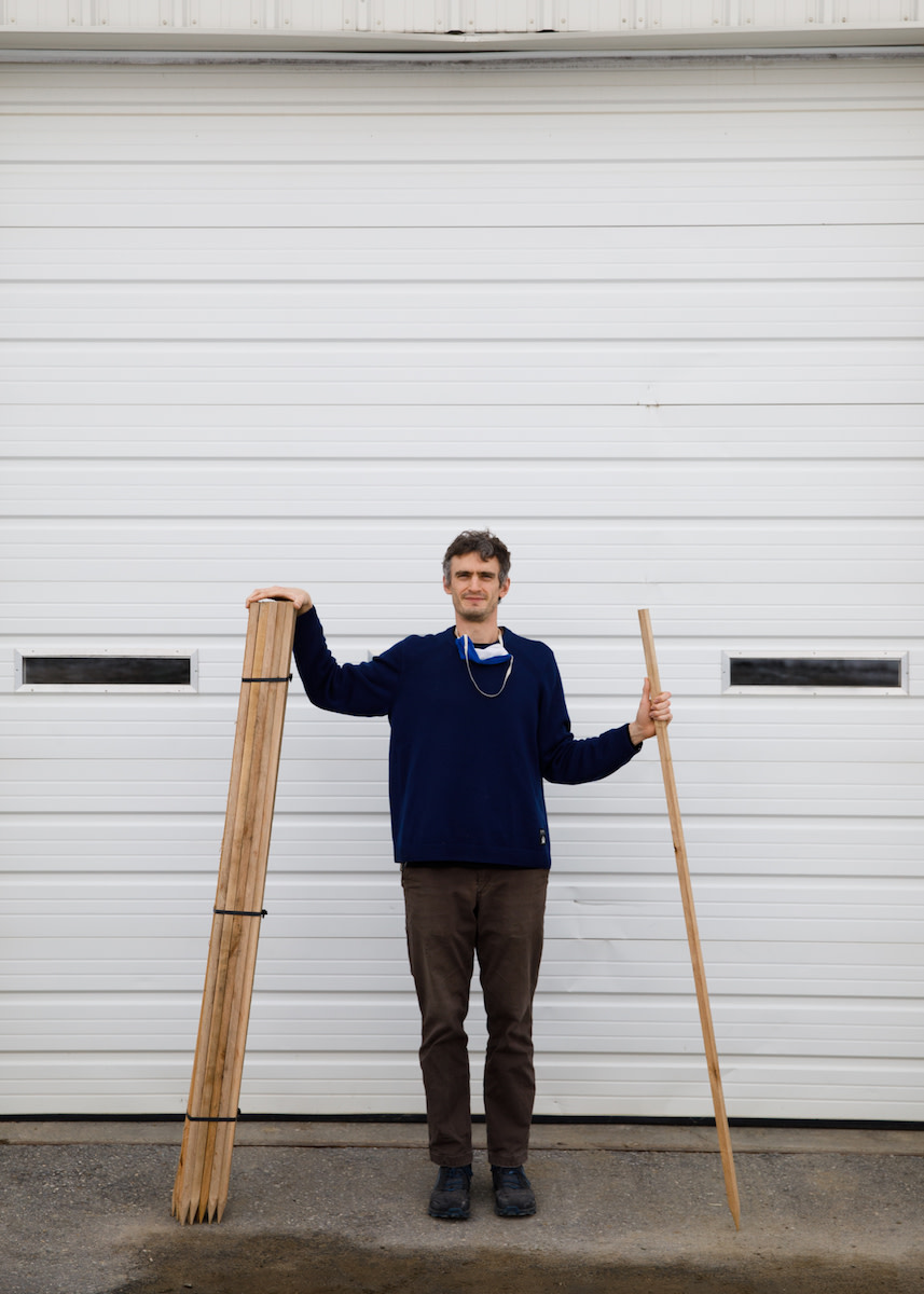 Hardwood tomato stakes, 1"x1"x6', bundle of 25. Pointed on one end. Locally harvested and milled hardwood (either ash or oak). Walk-in sales only.