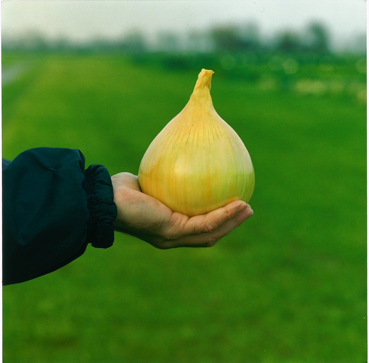 These enormous slightly oval pale straw-colored globes are sweet, juicy, mildly pungent and store but a short while. Catalog editor Elisabeth gives them pride of place in the garden where the 1–3 lb beauties boost her morale each time she walks by. Emily Skrobis focused only on storage onions until she met Ailsa: “Now I can’t imagine my garden without it!” Year after year astounding specimens are exhibited at Common Ground Fair. Also known as Exhibition, a cross between Danvers Yellow and Cranston’s Excelsior, introduced by David Murray in 1887. Adapted to 38–60° latitudes.