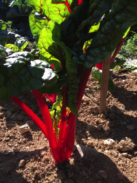 Bali chard is a spectrum leap from traditional rhubarb chard even at baby stage—it’s like putting little red lightning bolts in your salad mix. With a very dark lush green fully savoyed leaf, the veins and stalk contrast like fiery lava. Mouthfeel is juicy and succulent; flavor very mild. No odd bolting or wilting, no beet-rooted rejects or wiggly weird stems. Excellent regrowth for multiple harvests. This is red-chard perfection from Bejo Seeds.