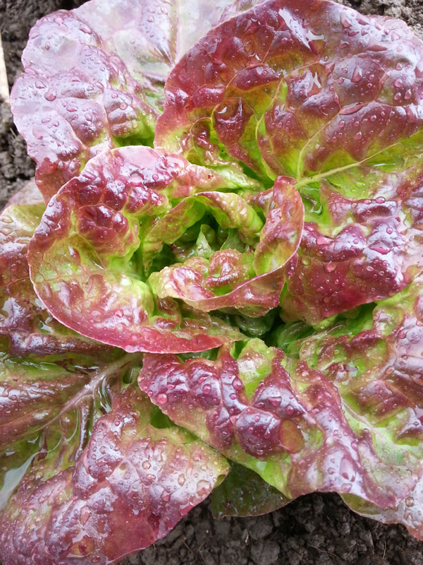 A really superior romaine lettuce from breeder Frank Morton. When it romaines, it sends up gorgeous purple ruffled center flag leaves. Its large veins, green tinged with purple, are crunchy, juicy and sweet with a hint of bitterness. The texture of its tapered cos-like leaves is chewy and pleasant. Recommended for early spring planting; resisted BOR and showed a moderate ability to withstand heat. Plants compact, uniform and dazzling even when crowded.