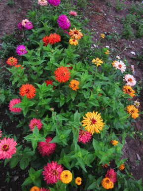 Annual. Large ruffled zinnia blossoms resemble chrysanthemums in a mix of cactus petals and those that are more standard. Profuse immense blooms in scarlet, orange, pink, yellow. One of the easiest flowers to grow from seed and a favorite for bright color in Maine summers. 3' tall. ~110 seeds/g.