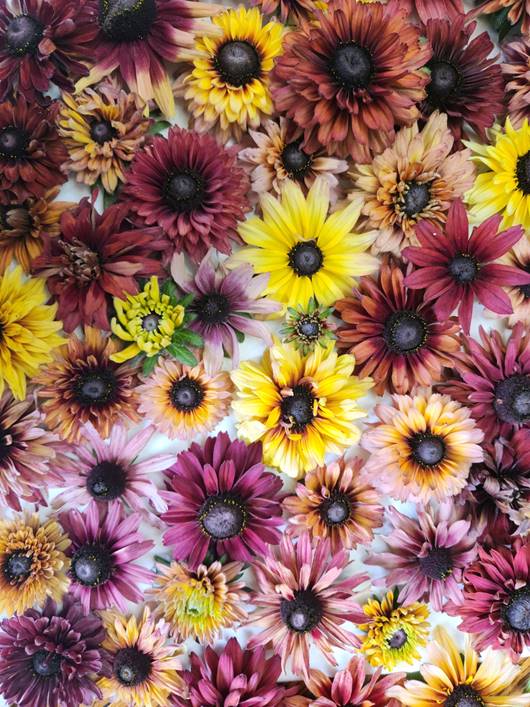 Annual. A stunning array of raspberry, pink, yellow and copper, in single and double blooms, all with dark shiny centers. From midsummer to frost, these bountiful blooms on 12–22" plants will make nice bouquets, but be sure to leave some uncut for the pollinators.